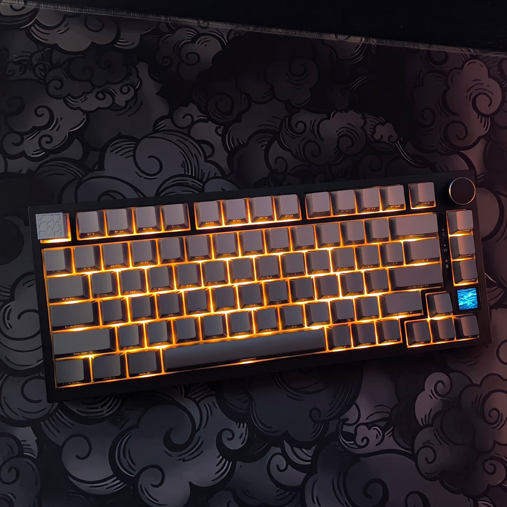 A complete Minecraft-inspired keycap set featuring a clean gray gradient design and a detailed Minecraft furnace MagneKey. The keycaps are side-printed, keeping the top surface clean while the legends remain clearly visible during use. The furnace keycap captures the familiar pixel texture and colors, integrating seamlessly into the set while adding a subtle illuminated accent through your keyboard’s RGB.